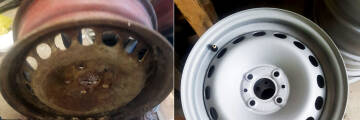 Przygotowanie felgi pod lakierowanie proszkowe (piaskowanie przed i po)